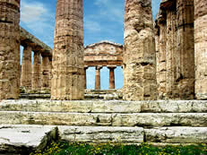 Paestum was founded by Greeks around 600B.C. Originally called Poseidonia, dedicated to Poseidon (the Roman Neptune), the God of the Sea. In 400 B.C. Paestum was occupied by the Lucans , an Italic population, the Lucans ruled until 273 B.C. when it became a Roman colony and the name changed to Paestum.